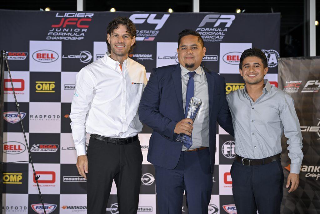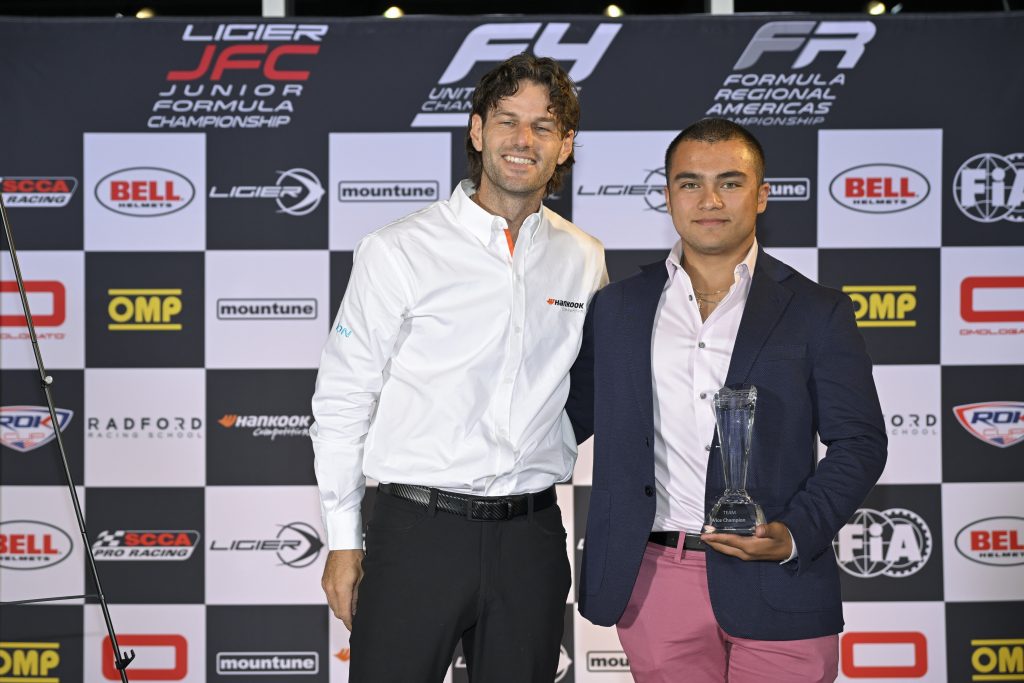 “I thought I was pretty solid throughout the whole year, but I’ll take it,” joked Jacir when accepting the award. “There are many people that I have to give a ‘thank you’ to. First of all, I have to thank LC Racing Team. [I spent] the beginning of the year with them. Leo [Colman, LC Racing team owner] has been there throughout my whole career, and I really have to thank him for that. I’ve got to thank Mikey, Fernando, all those guys for helping me. And then, this last round with Champagne Racing. I have to thank Victor [Rubin], and all these guys for giving me the chance here to bring home a good win. Of course, I also have to thank Scott [Goodyear, Race Director] for really helping me throughout this whole year, and everyone else at Ligier JFC—Kelley [Huxtable, Registrar], everyone in tech, and everyone else, as well. Thank you.”
